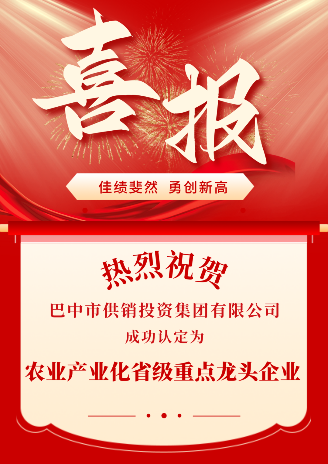 2024年12月27日,被四川省農(nóng)業(yè)農(nóng)村廳認(rèn)定為農(nóng)業(yè)產(chǎn)業(yè)化省級(jí)重點(diǎn)龍頭企業(yè)。