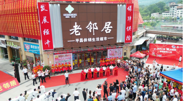 四川省供銷投資集團黨委書記、董事長茍學(xué)川宣布“老鄰居•平昌供銷生活超市”正式開業(yè),四川省供銷社企業(yè)發(fā)展與金融服務(wù)處處長楊韜等領(lǐng)導(dǎo)莊嚴剪斷彩帶,迎進第一批近1000人的消費客人。
