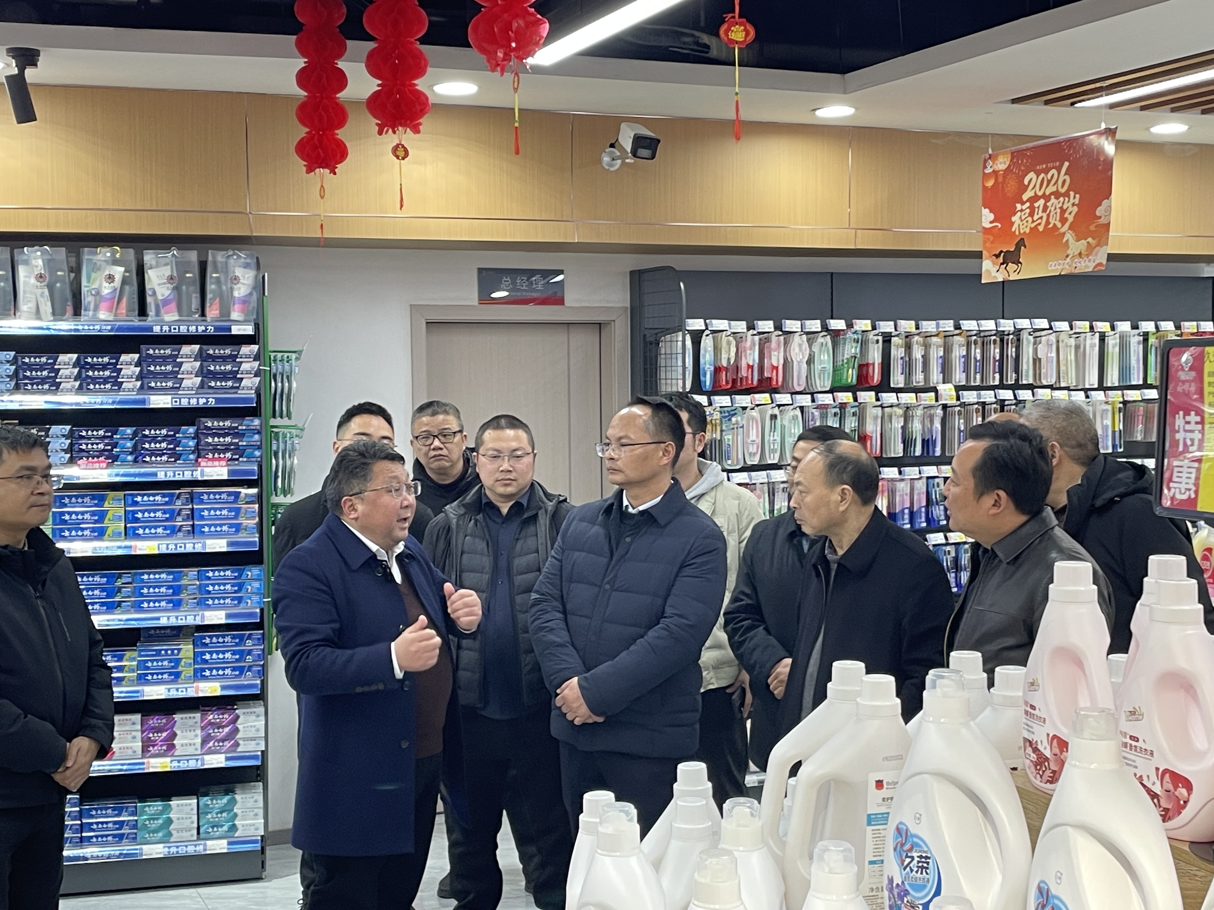 在老鄰居·平昌供銷生活超市,考察組聽取了社有企業(yè)負(fù)責(zé)人對供銷超市經(jīng)營模式、商品結(jié)構(gòu)、銷售情況的介紹,并就社有企業(yè)融入城鄉(xiāng)便民服務(wù)、拓展消費(fèi)市場的運(yùn)營模式進(jìn)行了探討。